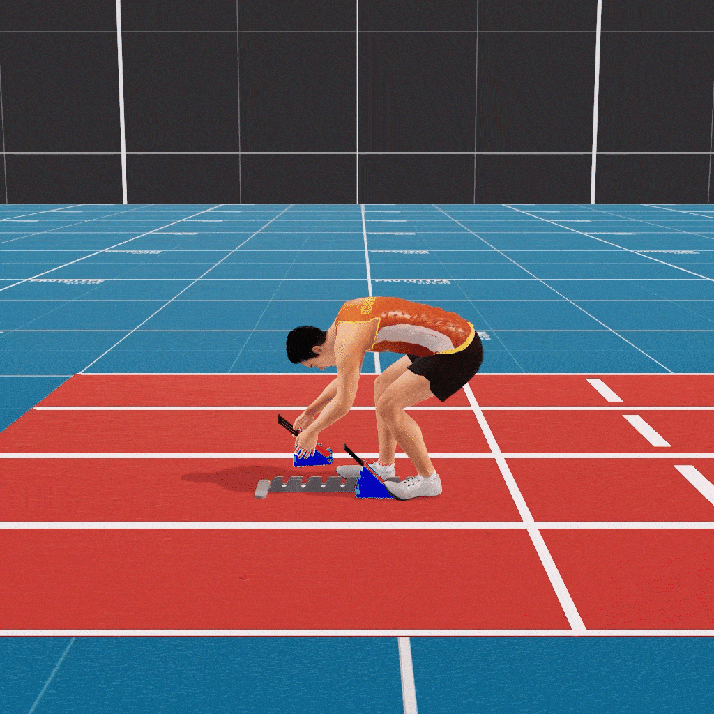 确定起跑器踏板的最佳位置和间距,确认起跑器的放置适合运动员,